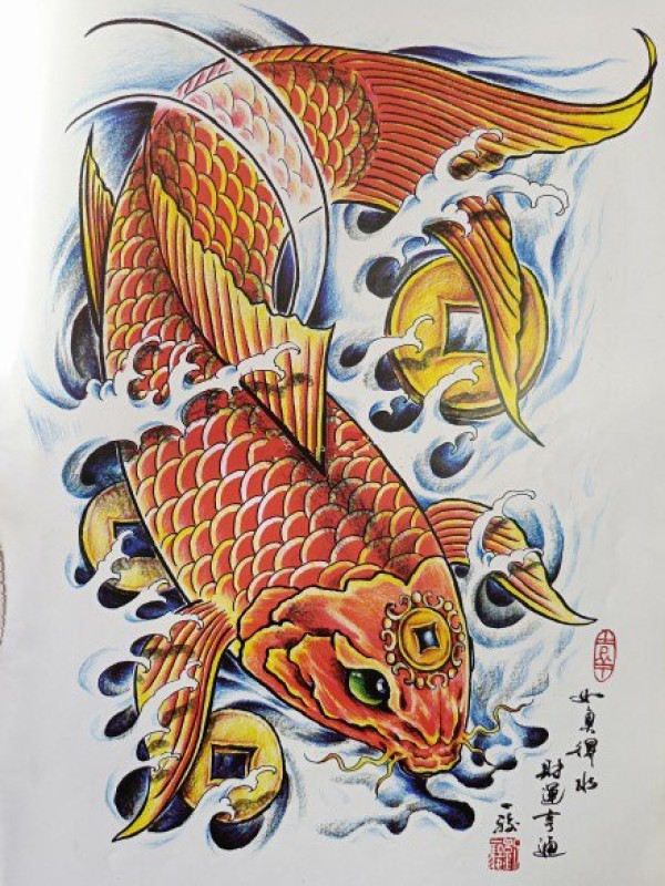 传统的30款鲤鱼纹身手稿图片赏析