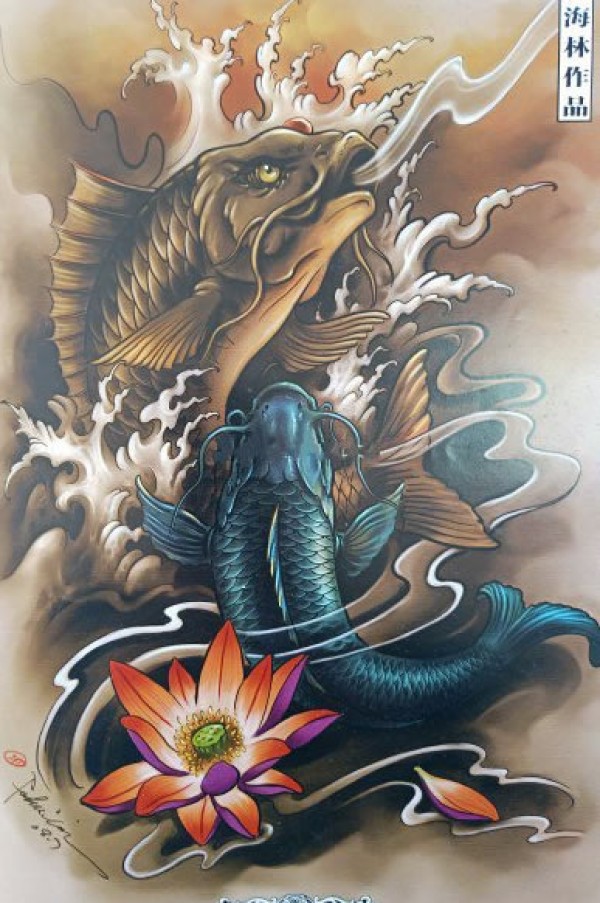 传统的30款鲤鱼纹身手稿图片赏析