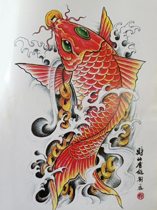 传统的30款鲤鱼纹身手稿图片赏析
