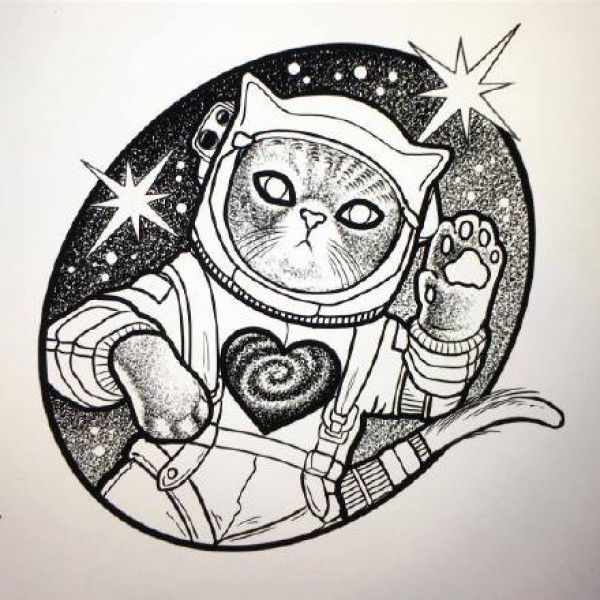 小清新猫头主题的一组猫神纹身素材手稿