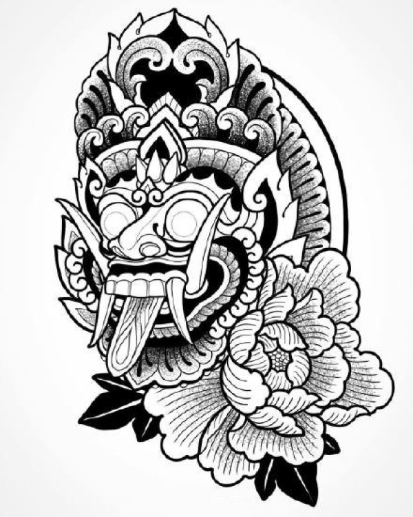 传统艺妓般若纹身图案手稿