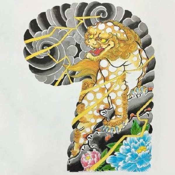 半甲唐狮手稿 传统的9款唐狮主题半甲纹身手稿图片