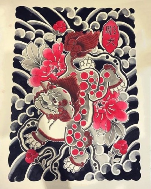 半甲唐狮手稿 传统的9款唐狮主题半甲纹身手稿图片