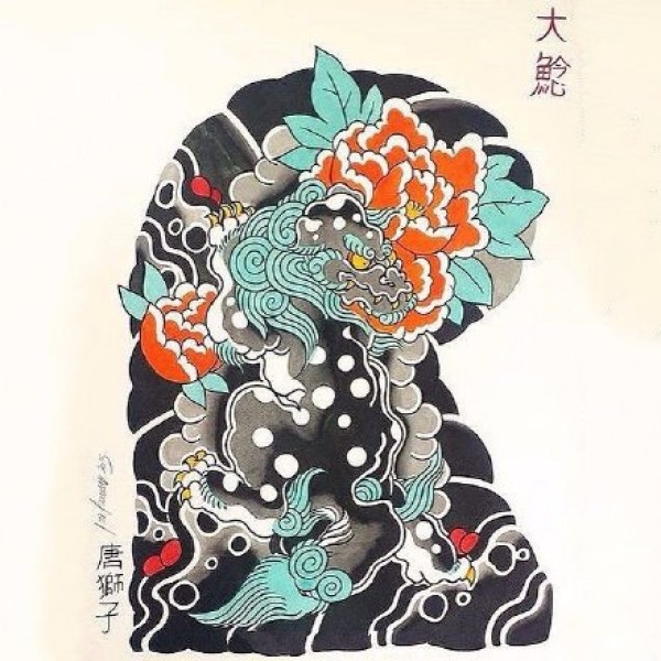 半甲唐狮手稿 传统的9款唐狮主题半甲纹身手稿图片