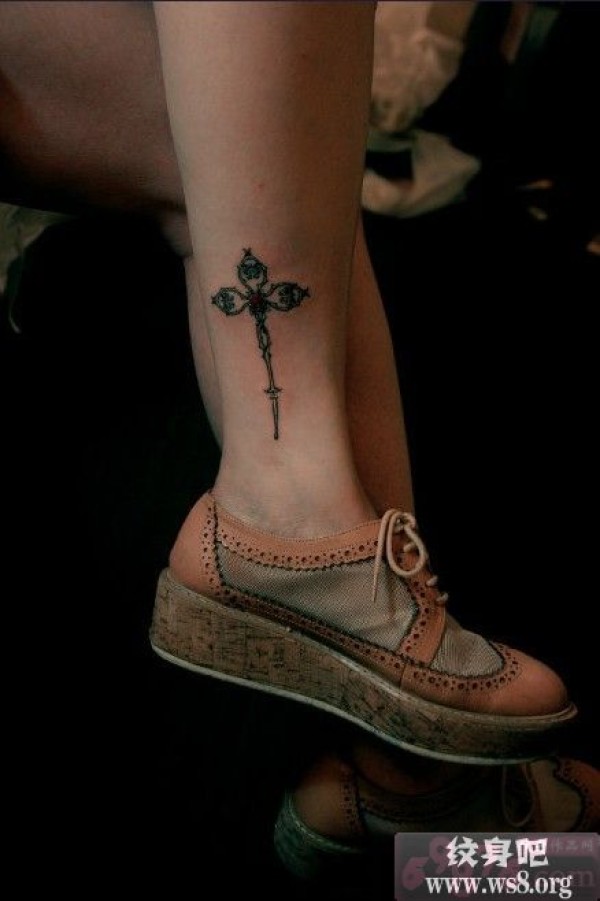 创意十字架花脚踝纹身图案_十字架纹身图案大全_纹身图吧