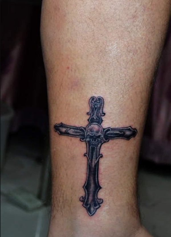腿部好看的十字架吊链纹身图案_十字架纹身图案大全_纹身图吧