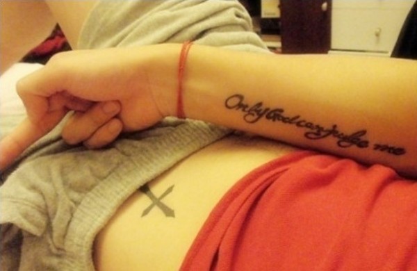 女生腰部十字架纹身图案图片_十字架纹身图案大全_纹身图吧