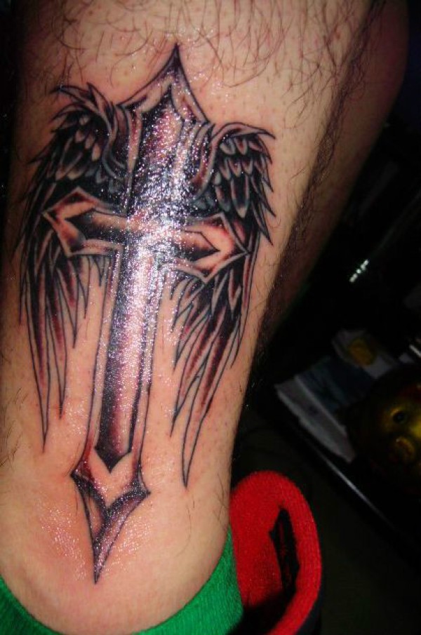 小腿上的十字架_十字架纹身图案大全_纹身图吧