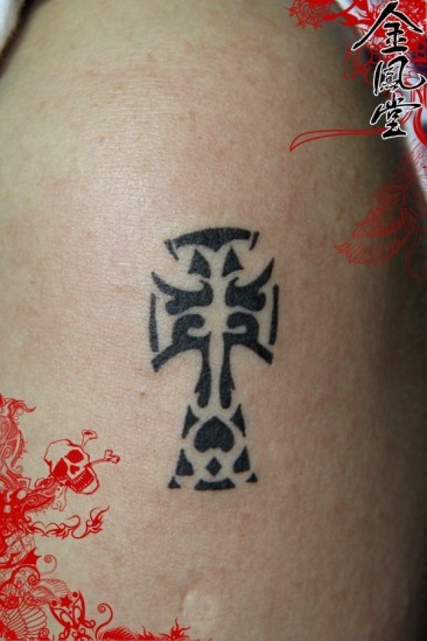 一款扎进皮肤的十字架纹身图案_十字架纹身图案大全_纹身图吧