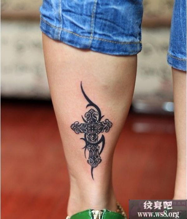 小腿复古时尚十字架纹身图案图案_十字架纹身图案大全_纹身图吧