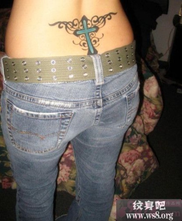 女生后腰时尚十字架纹身图案_十字架纹身图案大全_纹身图吧