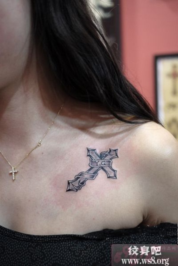 女生胸前时尚十字架纹身图案_十字架纹身图案大全_纹身图吧