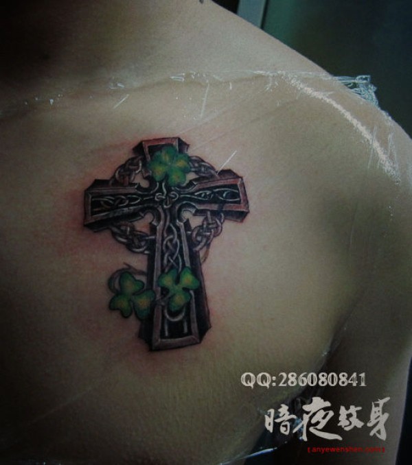 胸部漂亮的彩色十字架纹身图案_十字架纹身图案大全_纹身图吧