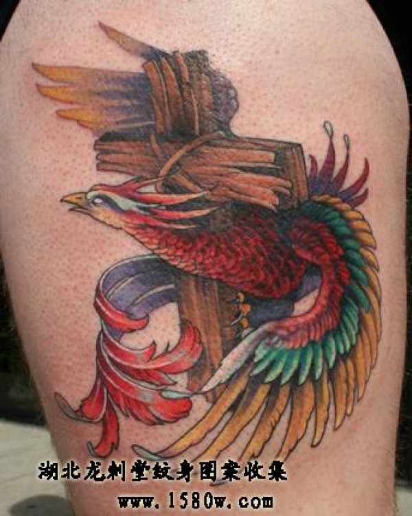 十字架凤凰纹身图片_十字架纹身图案大全_纹身图吧