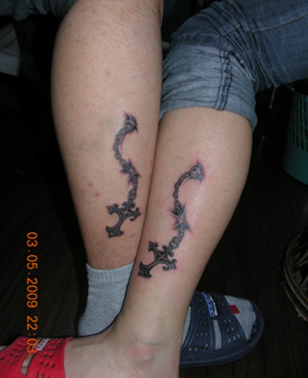 腿部好看的十字架吊链纹身图案_十字架纹身图案大全_纹身图吧