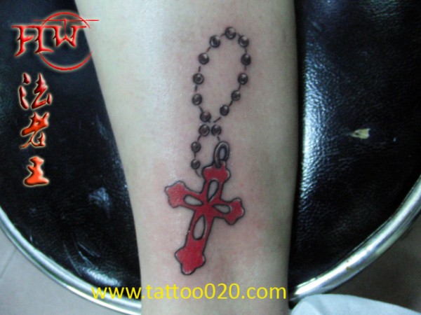 腿部好看的十字架吊链纹身图案_十字架纹身图案大全_纹身图吧