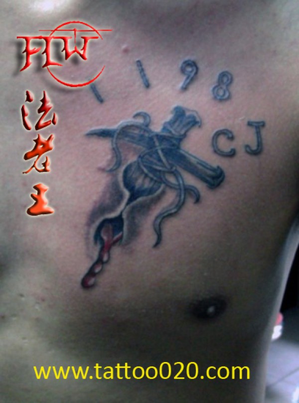 胸部十字架纹身_十字架纹身图案大全_纹身图吧
