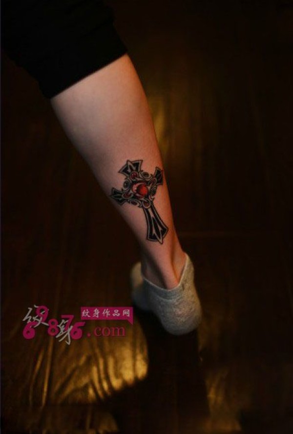 复古的十字架后脚踝纹身_十字架纹身图案大全_纹身图吧