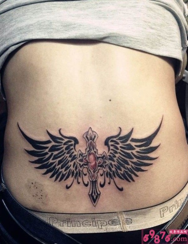 后腰十字架翅膀纹身_十字架纹身图案大全_纹身图吧