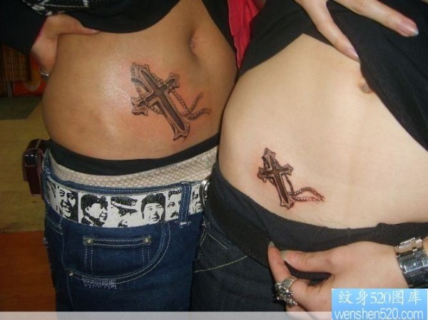 情侣纹身图片经典情侣十字架吊链纹身图片作_十字架纹身图案大全_纹身图吧