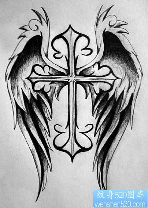 一款十字架翅膀纹身图案_十字架纹身图案大全_纹身图吧