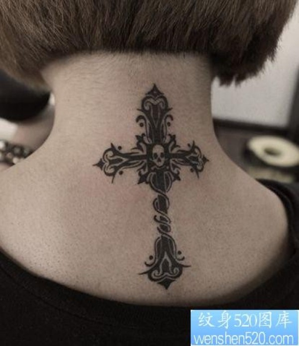 女孩子颈部图腾十字架纹身图片_十字架纹身图案大全_纹身图吧