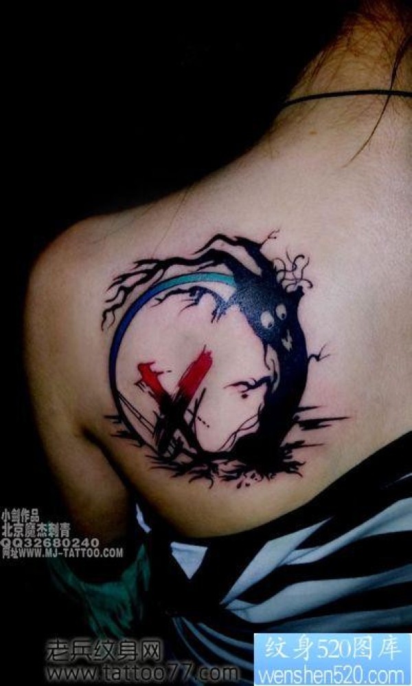 美女肩部另类的图腾树十字架纹身图片_十字架纹身图案大全_纹身图吧