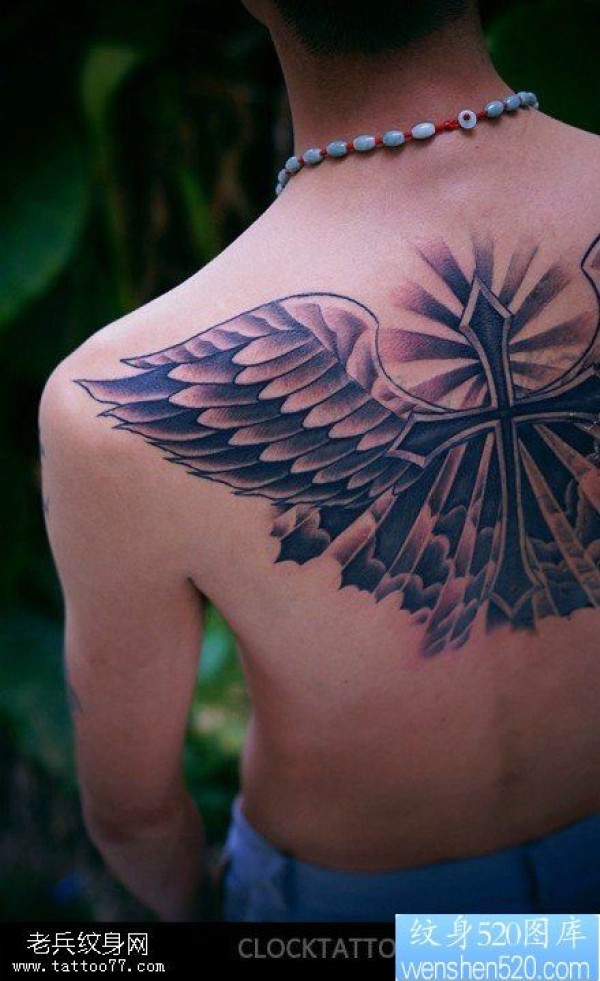 背部十字架翅膀纹身图片提供_十字架纹身图案大全_纹身图吧