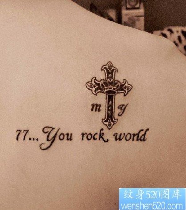推荐一幅肩背皇冠十字架字母纹身图片由纹身提_十字架纹身图案大全_纹身图吧