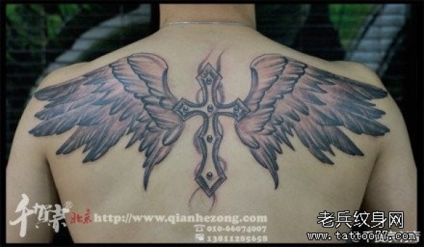 后背潮流帅气的十字架翅膀纹身图片_十字架纹身图案大全_纹身图吧