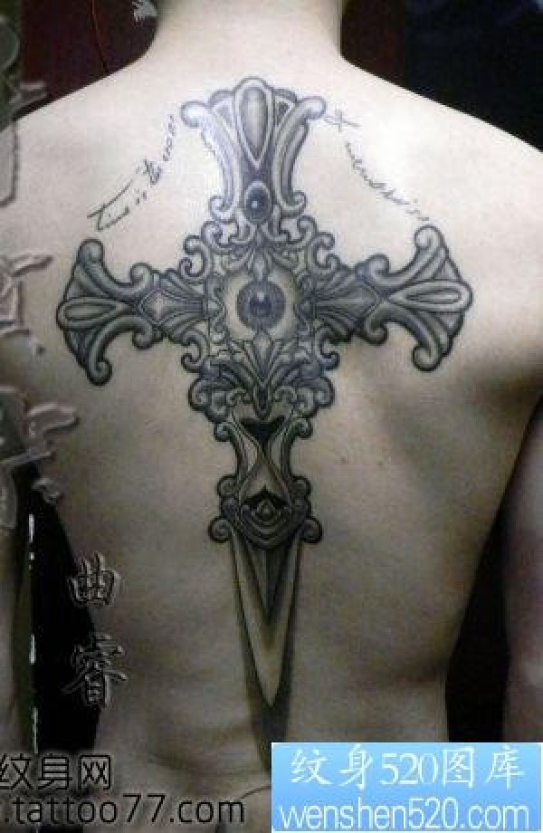 背部经典的十字架纹身图片_十字架纹身图案大全_纹身图吧