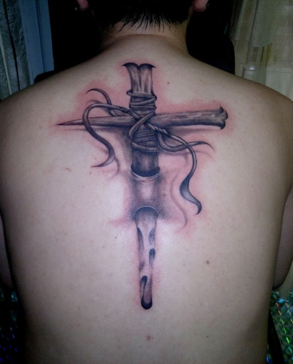 男士背部一款穿背而过的十字架纹身_十字架纹身图案大全_纹身图吧