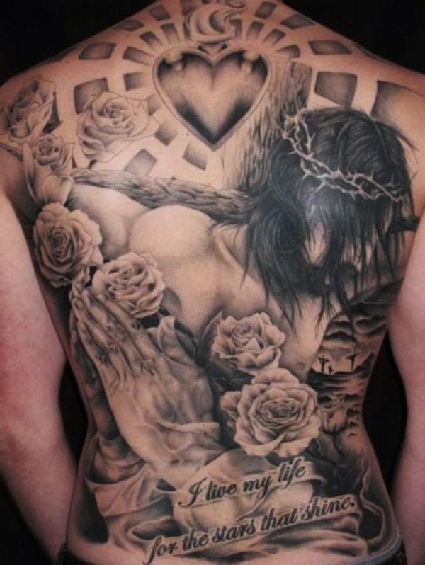 背部一款十字架耶稣纹身图案_十字架纹身图案大全_纹身图吧