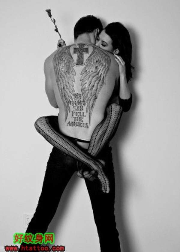 男人后背十字架翅膀纹身_十字架纹身图案大全_纹身图吧