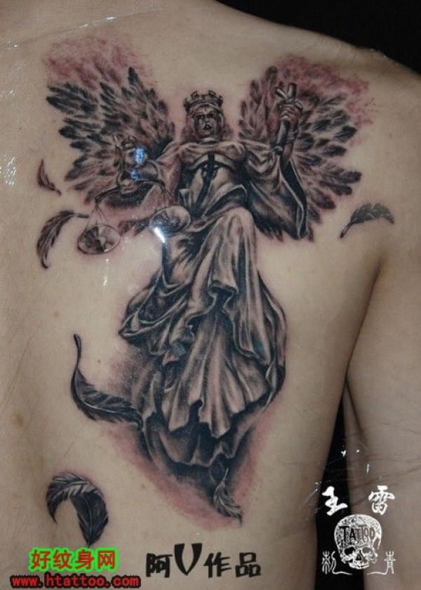 女生背部时尚流行的十字架翅膀纹身图案_十字架纹身图案大全_纹身图吧