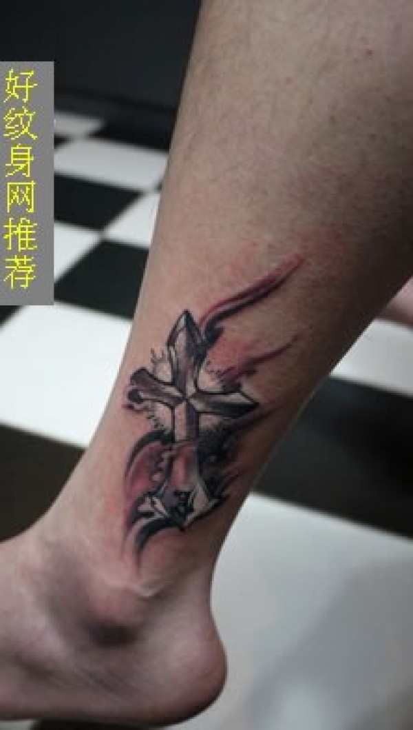 腿部好看的十字架吊链纹身图案_十字架纹身图案大全_纹身图吧
