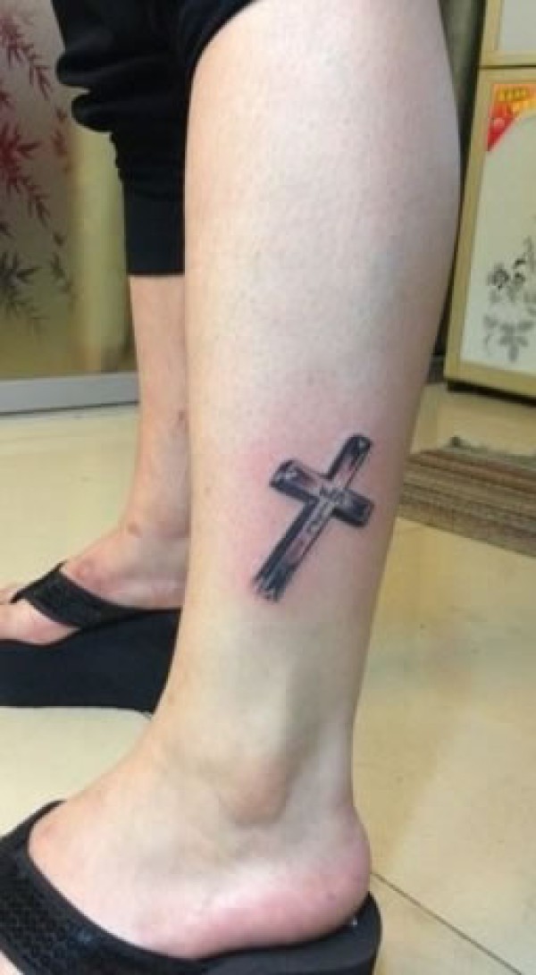 腿上很有趣的小图案纹身黑色的十字架纹身图_十字架纹身图案大全_纹身图吧