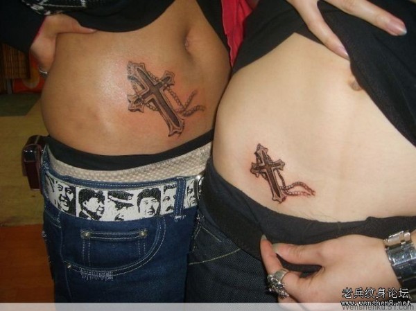 情侣纹身图案经典情侣十字架吊链纹身图案_十字架纹身图案大全_纹身图吧