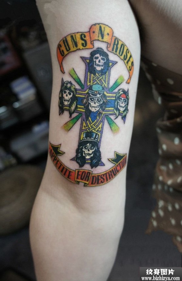 创意骷髅十字架手臂纹身图案图片_十字架纹身图案大全_纹身图吧