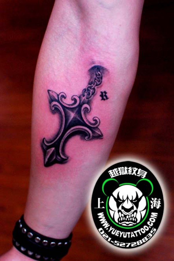 手臂锁链十字架纹身图案上海越狱纹身店作品_十字架纹身图案大全_纹身图吧