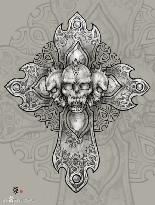 帅气很酷的一款十字架纹身手稿_十字架纹身图案大全_纹身图吧