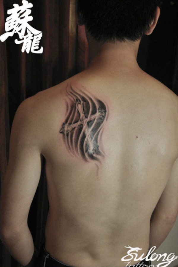 男人肩背很酷潮流的黑灰十字架纹身图案_十字架纹身图案大全_纹身图吧