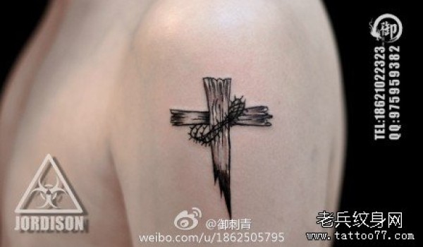 手臂一款小巧时尚的十字架纹身图案_十字架纹身图案大全_纹身图吧