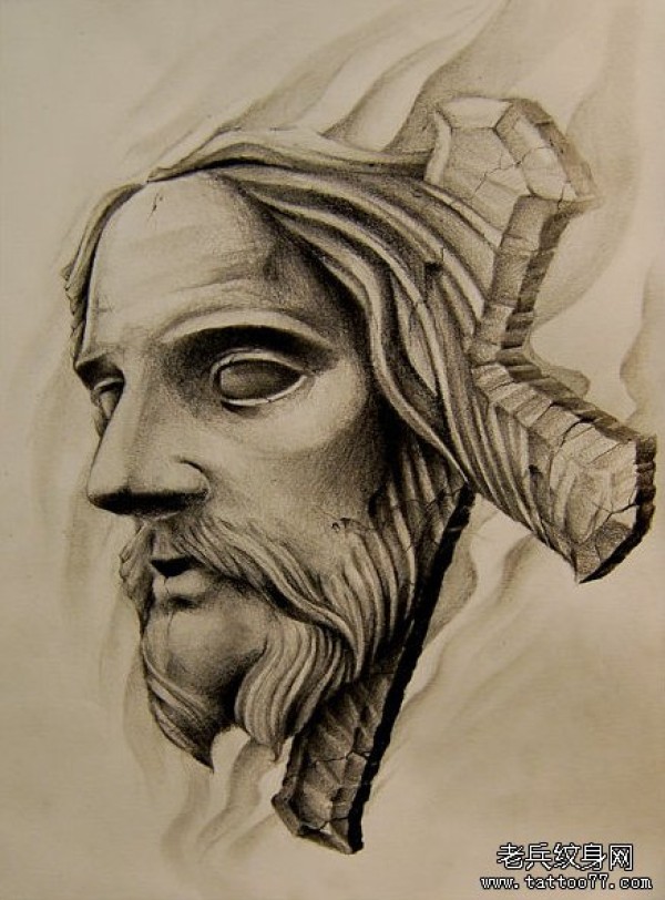 一款经典潮流的石膏像耶稣十字架纹身图案_十字架纹身图案大全_纹身图吧