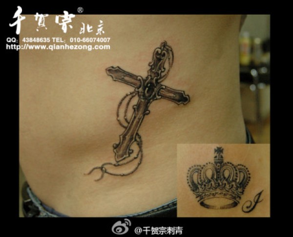 男人腰部潮流唯美的黑灰十字架纹身图案_十字架纹身图案大全_纹身图吧