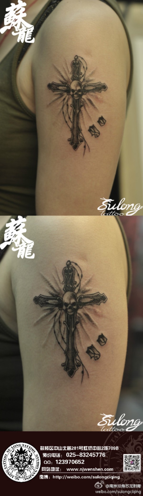 手臂潮流时尚的十字架纹身图案_十字架纹身图案大全_纹身图吧
