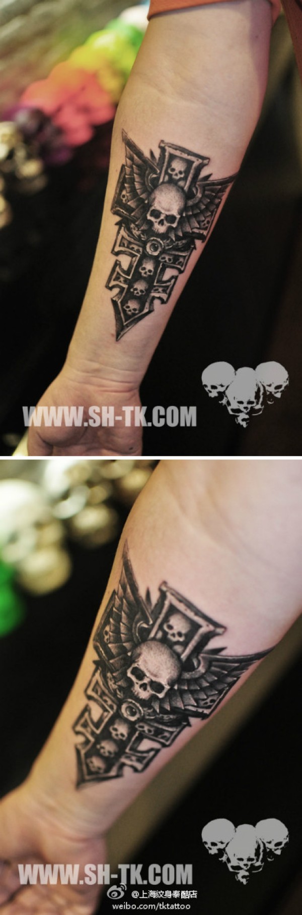 男人手臂超帅的十字架骷髅纹身图案_十字架纹身图案大全_纹身图吧