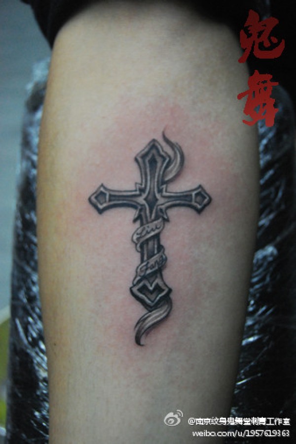 手臂小巧精致的十字架纹身图案_十字架纹身图案大全_纹身图吧