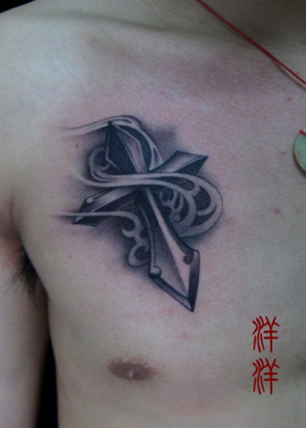 胸部一款经典漂亮的十字架纹身图案_十字架纹身图案大全_纹身图吧