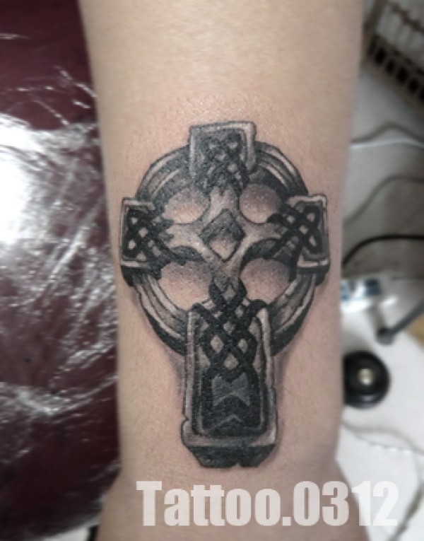 手臂一款石雕十字架纹身图案_十字架纹身图案大全_纹身图吧